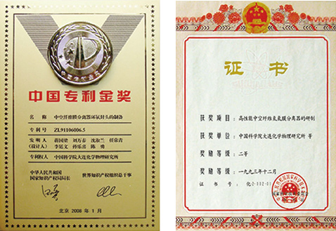 ●中空纖維系列超濾膜、微孔濾膜及組件的研制-----中科院科技進(jìn)步二等獎(jiǎng)