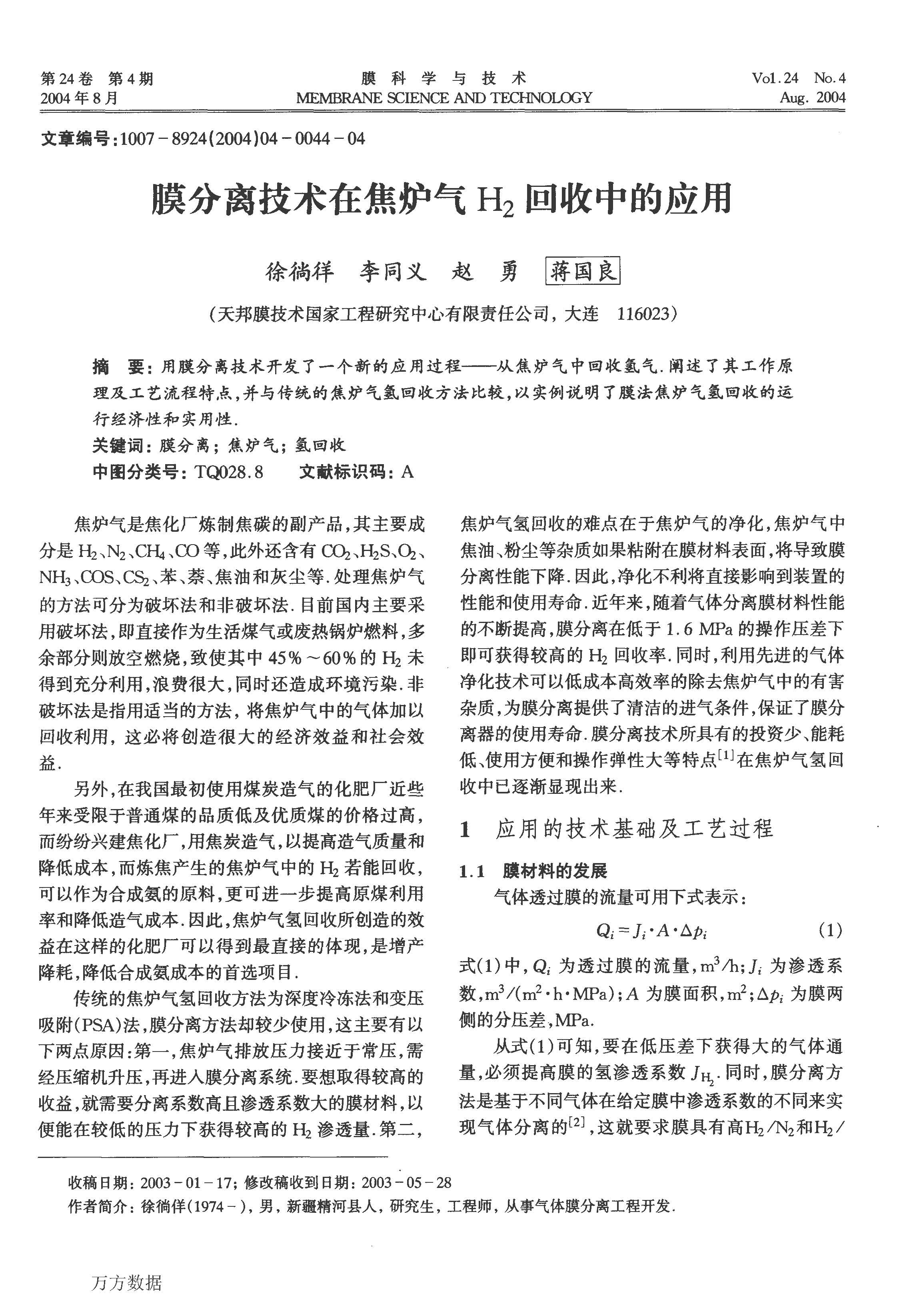 膜分離技術(shù)在焦?fàn)t氣H2回收中的應(yīng)用
