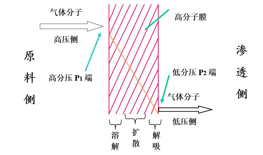 圖1 氣體分離膜原理—溶解擴(kuò)散機(jī)理
