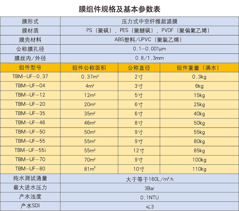 TBM可以提供多種規(guī)格和型號(hào)的超濾膜元件,能適應(yīng)各種環(huán)境、各種規(guī)模的水處理項(xiàng)目。
